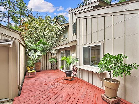 Charming townhome in a quaint townhome/gulf course community in the front of The Woodlands, close to everything. This home has a very open feel with high ceilings in the livingroom, tons of windows for the natural light to shine in. Formal dining room, two living and eating areas, Master bedroom down, two bedrooms and a full bath upstairs. Private courtyard front and back of home with plenty of room for entertaining or just lounging around. Two minute walk over to The Woodlands golf course and country club or just enjoy hopping onto the hikeand bike trail for a nice walk or jog. Ready for you now! All new paint, carpet (just in bedrooms/stairway) with lotsof nice updates such as granite counter tops in kitchen/mbath, all windows replaced with new low energy efficient, A/C and heater replaced in 2017, of course roof and outside of building are taken care of by your HOA. Your own garage with attached covered carport attached to your front court yard. Home has never flooded.