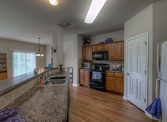 Large corner lot with alluring serene rose bushes leading you to your door. New vinyl plank floors in kitchen and dining room. Stunning brick/stone with side entry garage, gourmet kitchen with raised panel cabinetry, full ceramic tile back-splash, and a covered patio. This home, provides a large entry way, where it leads you to a great open floor plan in the living and kitchen area. It also sits across the street from the neighborhood park and empty maintained city property.