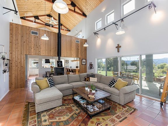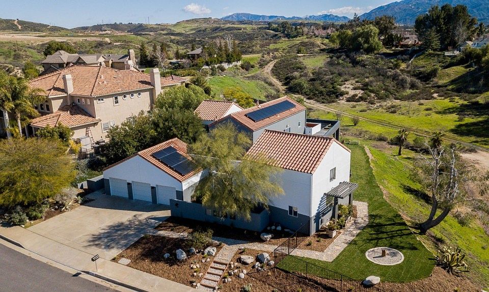 Modern farmhouse located within the prime Circle J Ranch community in Santa Clarita! The custom home sits on a huge 28,000+ lot and has a legal rent-able guest house. There are views in every direction, and the contemporary interiors are one of a kind including 25 foot high ceilings in the great room, an artist?s loft/office, and a climate controlled wine cellar with storage for 600 bottles of wine. The home features a large main floor master bedroom with a custom bath with soaking tub plus 3 closets. Upstairs are 2 additional bedrooms, one with a private deck to take in the stunning views. The large cook?s kitchen has a Viking range, dual sinks, plus a breakfast room. The guest house/ADU was just completed and has a separate entrance, high ceilings, a loft bedroom with hardwood floors, and a custom kitchen including a center island with a quartz ?waterfall? counter. The outdoor spaces were designed for California living and entertaining with terraces surrounding the home which were built to support multiple mature grape vines for outdoor dining. There is a 3 car garage, triple zoned heating and air conditioning, and an owned solar system. This home is completely one of a kind, come see it today!
