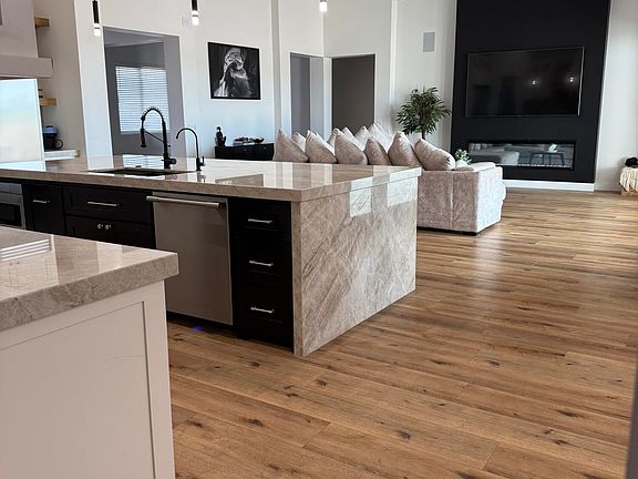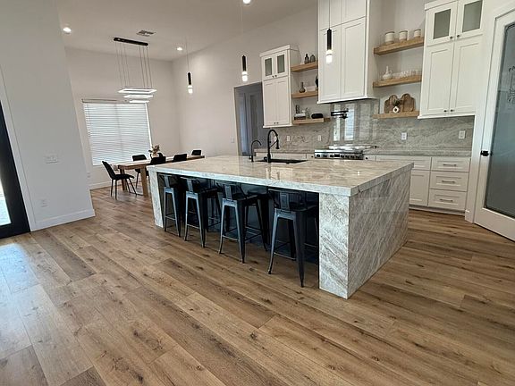 Discover your forever home in this breathtaking 4-bedroom, 3 full bathroom masterpiece, plus a versatile den plus office, set on a 1-acre lot with grandfathered irrigation rights and horse privileges. Step into grandeur with soaring 12-foot ceilings in the gourmet kitchen and inviting living room, creating an airy, open-concept space perfect for entertaining. The kitchen dazzles with exquisite Taj Mahal quartzite countertops, complemented by top-of-the-line stainless steel appliances (all included!), making it a chef's paradise.