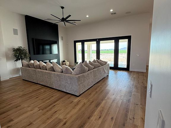 Each of the three full bathrooms boasts stunning, spa-inspired showers, The flexible den is ideal for a home office, gym, or guest retreat. Entertain in style on the oversized rear patio, ideal for large gatherings, barbecues, or starlit evenings with friends and family. This property offers ample space for horses, gardening, or outdoor hobbies, enhanced by rare irrigation rights. A state-of-the-art camera system provides peace of mind which is included as well as a fully paid reverse osmosis system. Don't miss out on this incredible opportunity! Book your tour today.