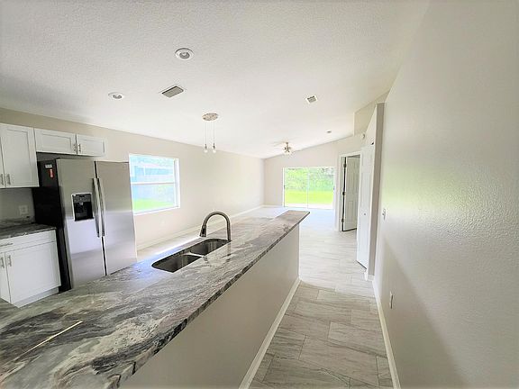 Updated and Upgraded! 4 bedroom 2 bath 1 car garage in Land O Lakes. Home has been recently remodeled with new tile flooring, featuring a kitchen with granite countertops and stainless steel appliances and the bath vanities have granite tops. Formal living/dining room. Spacious family room with sliders leading to the outside. Master bedroom also has slider leading out to patio. Split floor plan with additional bedrooms located at separate end of home. Open kitchen with lots of new cabinets for that extra storage space and a long breakfast bar. Vaulted ceilings throughout home. One car garage with washer and dryer hookups. Large backyard. This home is located on a cul-de-sac and is close to shopping and restaurants. This home will not last long at this price.