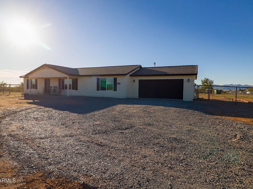 Beautiful less-than-a-year-old 3 bed, 2 bath home on over an acre with no HOA! Enjoy an open floor plan with vaulted ceilings, wood-look tile, and a modern kitchen featuring white shaker cabinets, quartz countertops, and a large pantry. The spacious primary suite includes dual sinks and a walk-in closet. Perfect for RVs, horses, and all your toys with plenty of room to build or expand. Peaceful country living with stunning mountain views — all just minutes from city conveniences!