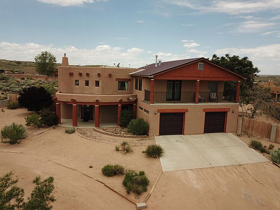 Virtual Tour Available!!(Zillow its in facts and features, interior details). Don't miss your opportunity to call this unique, Rio Rancho Estates, property your new home. Situated on a large lot with panoramic views of the Sandias, this southwest style home will not disappoint. It is chalk full of oversized large wood columns, wood vigas, and wood finishes throughout the home. The beautiful kitchen with custom cabinets are perfect for cooking, and opens up to living area making it great for entertaining. The custom stair case with wood/iron spindle railing, making for a grand entrance. The upstairs loft offers a spacious area with a wet bar with mini-fridge and sink. The master has a private balcony with amazing views of the sandias.