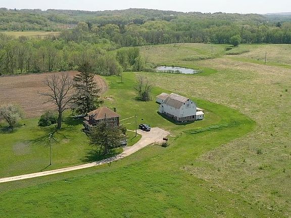 Located just east of Savannah this property is extremely versatile. The Plum River is the border for the majority of the property. On the interior property you have 35 acres of CRP generating $10,917 a year (through 2026). You also have two ponds. Timber and low ground situated in between the ponds/crp and tillable ground. Tillable ground could be rented out or converted to food plots. The house is unique brick two story. On the main floor you have a ton of living space.There is a good sized kitchen that goes into the dining room that has access to the large family room and bonus room. Off the kitchen you have a living room with fireplace and a half bathroom. Upstairs you have 4 bedrooms and a full bathroom. Behind the house you have two barns and a detached garage.