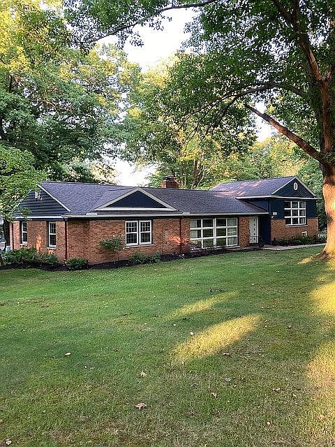This mid-century modern brick home consists of 3 bedrooms and 2.5 baths and is situated on a corner lot beneath the lush tree canopy of Fairlawn Heights. A welcoming foyer leads you to a large, bright living room with refinished oak hardwood floors, accented by the enjoyment of a fireplace and huge picture-frame style pane windows. A formal dining room opens to the lovely sunroom with a skylight overlooking a private backyard. The spacious kitchen offers plenty of cupboard and counter space, plus an eat-in breakfast nook. There is a planning desk with surrounding built-in cupboard space. Enjoy the convenience of a first-floor laundry area with additional ample cupboard space. The oversized master bedroom offers hardwood floors with plenty of closet space and natural light. A second-level family room adorned by another picture-frame window that expands the entire room length accents the built-in bookshelves and wet bar. The lower-level space, off the two-car attached garage, is perfect for a recreation room/office where this is also another fireplace and half-bath. Recent improvements include a new roof and gutters in 2020. New windows and front door were installed in 2017, along with new insulation and hot water tank replacement in 2016. The exterior paint was freshly stained in 2020. Mechanicals include gas heat and central air (two-zone climate control). A terrific location near great shopping and just minutes away from I-77. Built by local architect Phil Franz. This home has plenty of charm and character. A great deal in a fantastic neighborhood! Call 330-665-3377 for a showing.