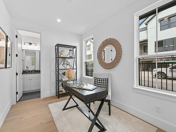 LIMITED PRIVATE DRIVEWAY HOME! Some of the best views of Downtown Houston are here at The Dennis Collection. This incredible residence is truly modern luxury at it’s finest. Features include open concept living spaces and an array of luxury finishes hand selected by the Aspen Grey design team. The first floor features a spacious bedroom or office with a full ensuite bathroom. Upon reaching the second floor, you will be greeted by a chef’s kitchen featuring a dry bar, BOSCH appliances, under cabinet lighting, and walk-in pantry. The third floor offers a large secondary bedroom with an ensuite bathroom and a large utility room with beautiful mosaic tile flooring and Washer/Dryer connections. Down the hall is the luxurious Primary Suite with sky high ceilings, massive walk in closets, lavish soaking tub, and a standing shower. The 4th Floor is the showstopper. Enjoy picture perfect views of Houston's skyline from your private Roof Deck
