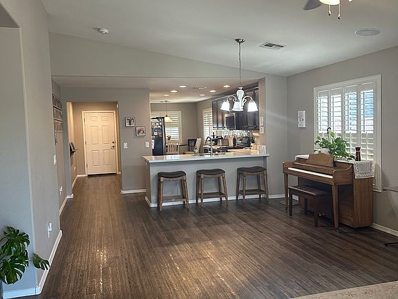 Highly Desirable unfurnished 3 bedroom + Den (can be used as 4th Bedroom), 2 Bath, 2 Car family home in Adora Trails is a must see! Only showing furnished photos for sizing visualization purposes. Interior fully repainted all one color, upgraded flooring, ceiling fans and faux wood shutters throughout! Open split floor plan with spacious dining and living room. Beautiful kitchen with eat-in nook and stainless steel appliances (Refrigerator, microwave, gas cooktop, oven & dishwasher). Quartz countertops with staggered cabinets including pull out pot and pan drawers. Master bath is complete with soaking garden tub, his & hers sinks and a spacious walk in closet. Cozy rear yard offers a covered patio and lots of lawn area for your family to enjoy. Great curb appeal too! Adora Trails offers basket ball courts, heated pool w/splash pad, clubhouse with kitchen, fireplace, meeting rooms and a full gym. Located close to shopping, parks, golf courses and highly desirable Gilbert Schools. Must see to appreciate all this home and community have to offer. $2,495mo. Prefer no pets but will consider on a case by case basis with additional pet fee. No aggressive breed dogs will be considered. Please do not disturb Tenants in residence. Call to schedule viewings. Available August 15, 2025. One year lease term minimum. Prefer no pets but will consider on a case by case with an additional non-refundable pet fee. No aggressive breed dogs will be accepted. No smoking or vaping permitted.
