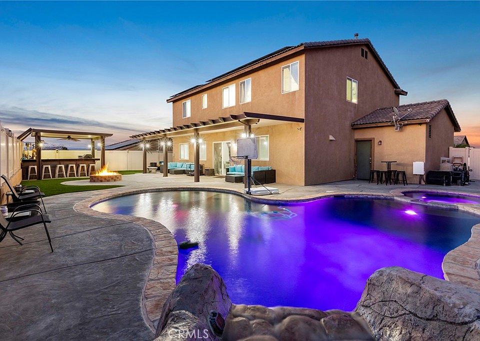 The backyard is truly an entertainers paradise. It features an oversized patio, a pebble-tech pool with multicolor LED lighting, a barracuda pool vacuum, and a seven -foot-deep pool with an oversized jacuzzi. The Baja areas is perfect for lounging with an umbrella while the kids play, and the waterfall with swim-up seating next to the jacuzzi adds a touch of luxury.