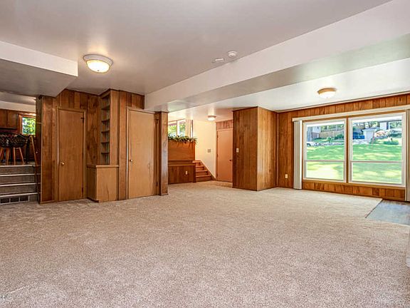 A nod to Mid-Century style this home offers a generous open floor plan, private wooded views and is adjacent to Lemery Park. The main living area features a kitchen, dining and family room with fireplace flowing together, creating an amazing space for entertaining and daily living. Many updates including newer roof, windows, hot water heater, driveway, awning and brand new carpet to name a few. Hardwood floors and attached 2 stall garage are an added bonus. Unfinished lower level offer many finishing options.
