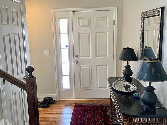 Great 3 bed home close to Voyager and Interquest exits from I-25, ten minutes from USAFA's North Gate. Nice open floor plan with engineered hardwood floor on the ground level including the kitchen, breakfast nook, dining room, and half bath along with covered patio access. Two car garage. Upstairs is a family room along with three bedrooms, including the master with large walk-in closet and its own bathroom. An additional bathroom for family or guests is also upstairs. This is a beautiful house. 1 small dog allowed in home with applicable pet rent or non-refundable deposit. No co-signers please.