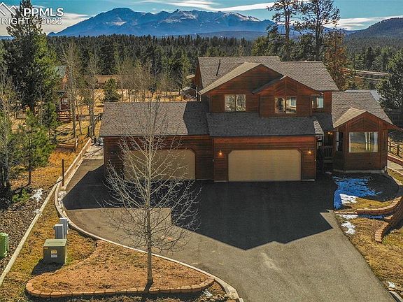 This home has has great view of Pikes Peak! Offering close to 2,400 Sq Ft, .35 acres and an oversized 4 car garage! This makes plenty of space for everyone to park, the space for recreational vehicles or have that workshop you’ve always dreamed of! Enter a roomy living area where you’ll catch that beautiful view of Pikes Peak. You can watch the traditional New Year's Fireworks while lounging on your couch. You are also within walking distance of the Woodland Park Middle School, where the annual Symphony Above the Clouds event is hosted every 5th of July. The main level's engineered hardwood flooring is very stunning. Enjoy your kitchen's all stainless-steel appliances, ample storage, and gathering area at the counter. A wonderful dining room with a pellet stove to make it warm and inviting during the winter holidays is located right outside the kitchen. A master bedroom, double-vanity bathroom, and walk-in closet are all located on the upper floor. Two more bedrooms and a bathroom are along the hallway. Don't overlook the seating area if you want some peace and quiet or to enjoy that book you can't put down. There is a charming family room with the potential to complete a half bath in the walk-out basement (plumbing already set up). Walk right out onto the stone patio and backyard, where you have countless options for any entertainment you desire. To discover the potential this home provides you and your family, contact us right away!
