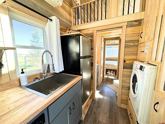 Explore the allure of small-scale living combined with investment opportunities! This tiny home is cozy and compact. Thoughtfully designed, this space optimizes every square foot for both comfort and practicality. Embrace the essence of minimalist living while maintaining your sense of style. Perfect for those desiring eco-friendly, low-maintenance lifestyles or a charming getaway. This tiny home also holds investment potential through short-term rentals that attract travelers. Situated in the Montrose's San Juan Meadows RV Resort, you can either lease the current lot or relocate this tiny home to your preferred spot. It's ready for all-season living. Schedule your showing today! Square Footage Information includes upper loft space and is deemed reliable but not guaranteed, buyer to verify all information.