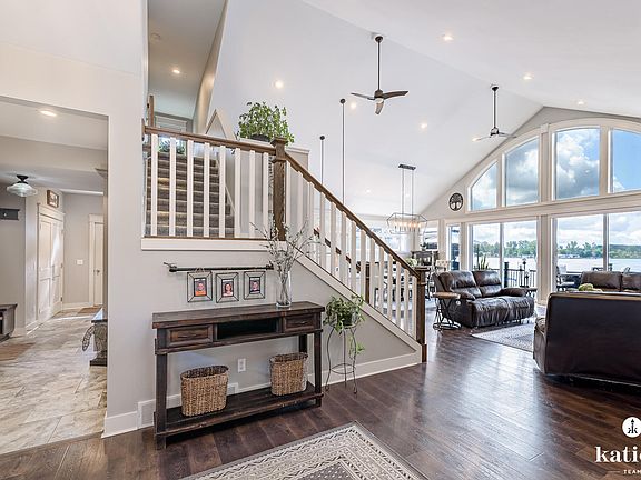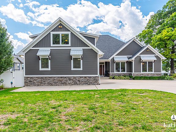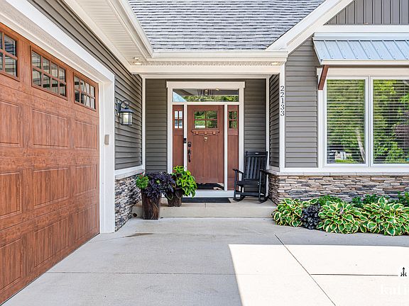 Welcome to this stunning lakefront home offering every amenity for luxury living on Sand Lake. Enjoy gorgeous MI sunsets every day! Inside, you'll find a gourmet kitchen w/Woodways in-set cabinetry, Thermador appliances, oversized fridge/freezer, double ovens(1 steam), pot filler, butler's pantry w/sink & quartz counters throughout. Custom details include oversized fireplace, built-ins, power blinds, luxury vinyl flooring & 3-zone heating/cooling. Primary suite boasts a huge custom, spa-like marble bath w/rainfall + body jets, backlit mirrors, makeup vanity, his & her walk-in closets. Enjoy a 3-season porch w/windows on 3 sides, Trex deck, custom stone stairway to a sandy beach, L-shaped aluminum dock & fenced dog run. Add'l perks: Fox Brothers siding/windows, spray foam insulation, 2½-stall heated garage, ICF foundation, 6' basement for ample storage. Situated on a 100-acre, sandy all-sports lake great for fishing & swimming. This home blends modern luxury w/true lakefront lifestyle.