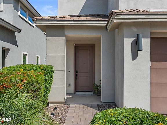 This stunning Springfield model by Pulte Homes is the perfect blend of style, comfort, and function—meticulously maintained and shows like a model! The heart of the home is the beautifully upgraded kitchen, featuring GE Profile stainless appliances, a large center island with breakfast bar, designer backsplash, and luxury wood-look vinyl flooring. The kitchen flows seamlessly into the spacious family room with a custom built-in entertainment wall, dimmable lighting, and integrated surround sound for an immersive media experience. Step outside to your private backyard retreat—complete with a sparkling pool, water feature, in-floor cleaning system, travertine patio and decking, built-in BBQ, and motorized electric screen enclosure. The backyard backs to open space with no neighbors behind , and sun-filtering screens offer added comfort and privacy. Inside, you'll find 3 bedrooms and 2.5 baths, including a spacious primary suite with custom barn doors leading to a spa-like bath with dual vanities, a walk-in shower, and large walk-in closet. Additional upgrades include a whole-home security system, water softener, upgraded carpet, custom-fit holiday lighting, and more. Located in the resort-style community of Sky Crossing, just minutes from Desert Ridge, top-rated schools, shopping, dining, and major freeways. Don't miss this exceptional opportunity! Additional upgrades/updates can be found in the Docs tab.