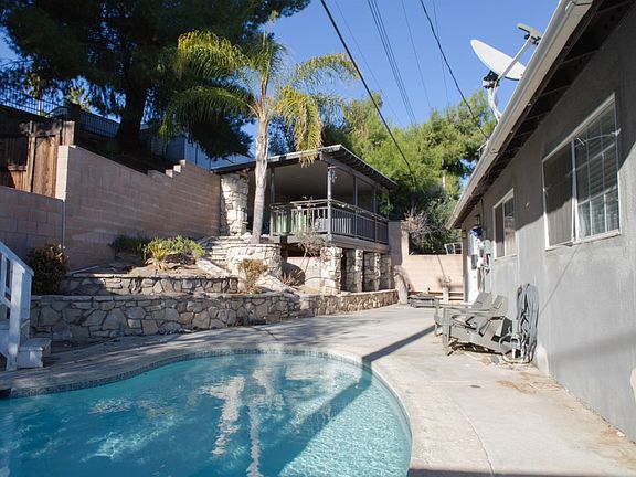 Beautiful pool home located minutes from shopping centers, restaurants and Central Park. This 4 bedroom 2 bath 1376 sq. ft. home is in a prime location of the Santa Clarita Valley. Large front yard with enclosed gated front patio area, ample parking and custom bricked parkway. This open concept welcoming home has crown molding, recessed lighting throughout, a fireplace and lovely French doors leading to a backyard fit for entertaining! Enjoy the Santa Clarita Mountain view from the raised back patio overlooking the pool and stone tiered planters perfect for gardening. Eat in kitchen features stainless steel appliances, granite counters and a large walk in pantry with lots of storage. Bathroom is newly remodeled with tile flooring, dual sink, dual Grohe shower head, and lots of storage, home also has, new copper plumbing per seller and newer sewer line. BONUS-BONUS-BONUS: Fully paid off solar panels installed January 2018. Great opportunity to make this your own!