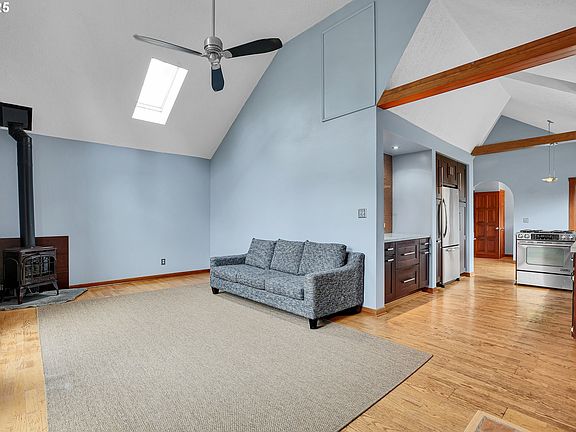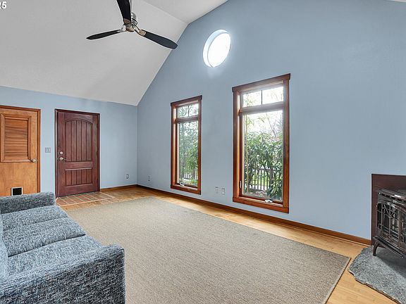 Beautiful Modern Tudor near Old Town Forest Grove! The overflowing character with all the modern conveniences all on one level. This rare home boasts soaring vaulted ceilings with exposed timeless wood beams that elevate the living space and creates an airy welcoming atmosphere. The family room is a standout feature, with oversized windows and skylights that flood the room with natural light, creating a warm and inviting area. The cozy gas stove adds a touch of comfort, making this the perfect space for gathering or relaxing. The kitchen is a chef’s dream with a great room open concept, designed with vaulted beamed, custom backsplash, tasteful cabinets, built-in cooktop, and butcher block countertops, adding both style and functionality. The wood floors flow seamlessly throughout, maintaining the charming essence. The primary suite features a modernized bathroom with a custom tile walk-in shower, unique handcrafted Shoji doors, heated bamboo floors, and laundry for added convenience. 2 additional sizeable bedrooms with abundant closet space for organization. Enjoy the features of the generously sized chic hall bathroom with a soaking tub. Updated electrical, plumbing, and new sewer line. Outside, you’ll find a low-maintenance Trex deck, manicured landscaping with a variety of fruit trees, garden beds, and multiple bamboo trees that surround this delightful home, adding a natural beauty to the landscape. Plus, 15x9 outbuilding, that is perfect for storage. Walking distance to Forest Grove Theater, Pacific University, coffee, shops, dining, and more! This home’s stunning architectural details and natural light create an environment of warmth and tranquility—making it a truly special place to call home.
