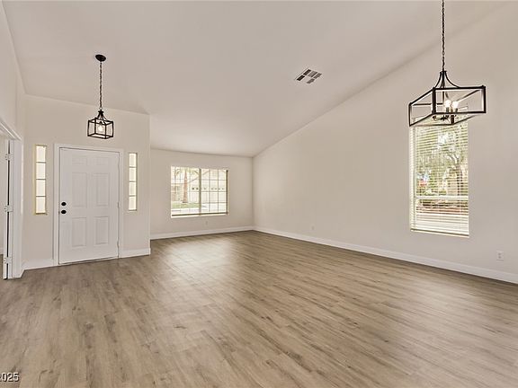 Charming 4BR property on a coveted corner lot in North Vegas at Rancho Del Sol! This single-level home offers a charming curb appeal with a low-maintenance front yard and a 2 car garage. The interior boasts spacious living areas, soaring ceilings with stylish light fixtures, and LVP flooring throughout. The large great room allows for easy entertaining, while the family room with fireplace promotes a cozy & inviting space. The neat white kitchen showcases wood cabinets, quartz countertops, a breakfast bar, an island, and built-in appliances. The spacious primary bedroom has backyard access, a fireplace, and a full ensuite with a dual vanity, a soaking tub, and a walk-in closet. The sizable 4th bedroom has direct access to the 2nd bathroom. The backyard offers a covered patio and lots of landscaping potential. What’s not to like? This abode is waiting for its new owner’s personal touch. Great location near schools, markets, restaurants, and easy access to major roads & Fwys. Act now!