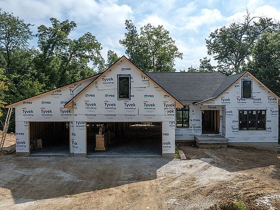 New construction scheduled for November completion. Enjoy a peaceful and private wooded setting at the exclusive Keystone on Lakeside development. Keystone offers walking trails and private access to two stocked ponds, wildlife abound. This one of a kind custom ranch floor plan highlights the natural beauty of the landscape with 11' windows in the main living area. Ten foot ceilings create an expansive feeling space, yet cozy with a large stone fireplace. The main floor is finished with 10.25" European white oak floors, a large kitchen with 48" freestanding double oven/range, walk-in pantry, and quartz countertops. The Primary suite includes an 11' tray ceiling, 10' window overlooking the forest, fireplace, and sitting area. The Primary bathroom includes his and hers vanities and custom tiled shower with two showerheads. A large walk in closet includes built-in cabinets and shelves and hook-ups for a stacked washer/dryer. The 10' tall walkout basement includes a large wet bar, fireplace, and an additional three bedrooms and bathroom. The 6th bedroom is 16x25 and suitable for a golf simulator, theater room, or home gym. The house is situated on the lot to provide for the addition of a detached 3 stall garage or pool with a pool house. Additional features include: garage heater rough-in, irrigation system, tankless water heater, LP smartside siding, oversized 3 stall garage with 18' and 10' garage doors, 3 seasons porch with EZE Breeze windows.