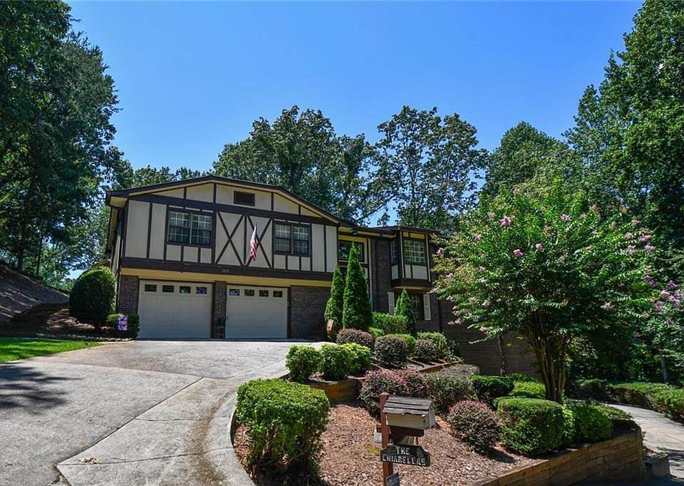 This classic Tudor-style home has been meticulously maintained and is ready for your creative updates. The charming property sits in a quiet cul-de-sac and features almost fairytale-like landscaping. You'll love the double driveway with 4 garage spaces, perfect for a boat and spare vehicle storage. Truly a spacious home with 5 bedrooms (3 ensuites), multiple living areas, huge primary suite, an office, exercise room, hobby room, big den with a fireplace, storage galore, and endless possibilities. Enjoy the grilling deck overlooking the flat backyard, and a second more intimate covered deck with built-in benches. There is so much space for a growing household or for entertaining multiple overnight guests. In an exceptional location just moments from shopping, lakefront parks & marinas, the botanical garden, medical facilities, and Gainesville's growing restaurant scene.