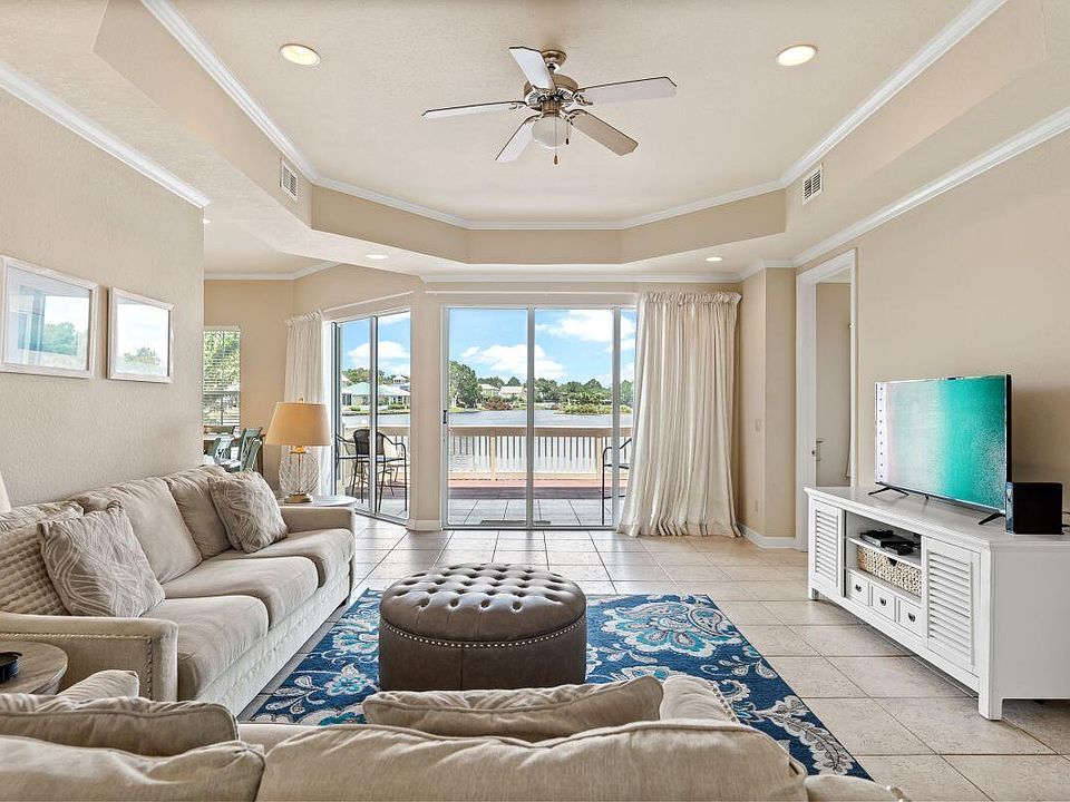 Rare opportunity to own a first-floor lakefront 3BR-3BA condo at Sandestin Resort with revenue potential of $50K! 2214 Crystal Cove Lane is a premier waterfront condo located in the Crystal Cove neighborhood at Sandestin Resort. The location is tucked away yet convenient to all that Sandestin has to offer. With 10 ft ceilings, this 3BR-3BA is flooded with natural sunlight and offers a spacious floor plan, a covered porch, and a sunny deck overlooking Crystal Lake. The comfy living area, updated kitchen, breakfast room, and primary bedroom all open through glass doors to the lakeside patio and deck. Both guest bedrooms offer adjoining full baths. There is a full-size laundry room, assigned parking, catch and release fishing, and access to a community swimming pool. The Sandestin beach resort amenities are available to property owners.