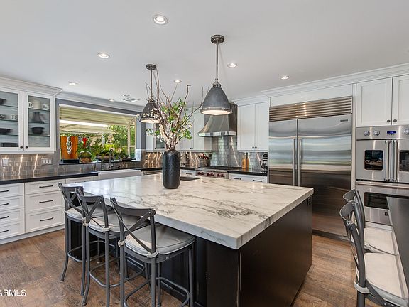 Complete extensive remodel, including all new above-ground plumbing, sewer lines, HVAC units, and electrical. This incredible Biltmore area home features a guest house, huge pool, and spa on over half an acre landscaped lot. It boasts a 4.5 car garage, a great room floor plan, formal dining, a butler pantry, a 600-bottle wine room with split unit temperature control, 5 bedrooms, 4 baths, and a spacious office with built-in cabinetry. The home's front entrance is raised above street level for more privacy. It features lush landscaping, a front patio automatic awning, and French doors. The great room has a built-in media wall and fireplace. It overlooks a gourmet kitchen with Viking double ovens, a warming drawer, a built-in microwave, a Wolf six-burner gas stove, a Sub-zero refrigerator... a large island, stainless-steel backsplash, and under-mount lighting. The main home features four bedrooms and three full baths, with fireplaces in the great room and primary suite. Every bathroom is exquisitely appointed, and the primary bathroom has double walk-in closets, double water closets, and a huge shower.
