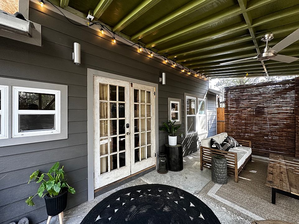 Newly renovated space w/ 465 square feet of indoor living space and 200 square feet of patio space w/ Lucious greenery. Kitchen has quartz countertops and brand new appliances in full kitchen, washer & dryer, wifi, security & Tesla charger.