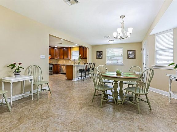 The one you've been waiting for! Meticulously maintained and move-in ready. Flood zone X. Bright and cheerful granite & stainless kitchen with custom cabinets, porcelain tile floors throughout. Primary suite has jetted tub with travertine surround, office nook. Large laundry room. Rear-yard access through double gate from alleyway. Relax on the covered patio with view of large backyard. 2 sheds included. Cute as a button!