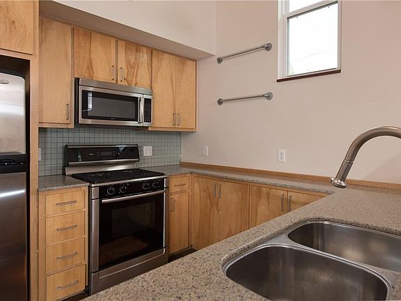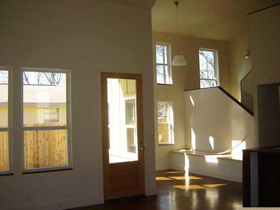 Designed by Architect Richard Hughes of Element 5 Architecture, this 2 story 3 bedroom 2 bath duplex has a modern look and energy efficient features for low utility bills! Soaring ceiling in the open kitchen/ living/dining, master suite upstairs has "crows nest" flex space that overlooks first floor. Concrete floors downstairs, bamboo upstairs. Skylights, tons of oversized windows. Stainless steel Bosch appliances, stack washer dryer. Ceiling fans in all rooms, Tankless gas waterheater. Fenced yard