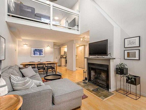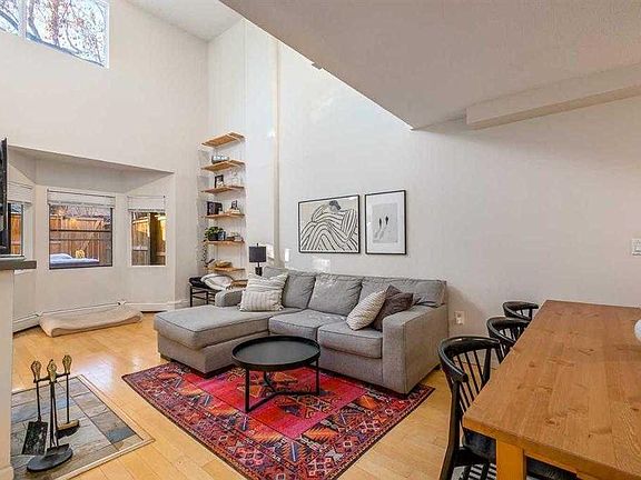 Soaring ceilingsGorgeous hardwood floorsBrand new windowsWest facingWood burning fireplaceModern kitchenFull-sized dining room