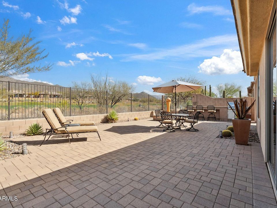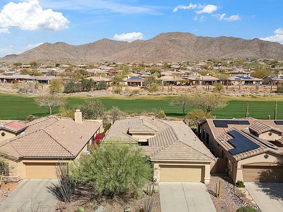 GOLF COURSE LOT with CASITA and RESORT BACKYARD! VIEWS OF DAISY MOUNTIAN! CUSTOM KITCHEN! NEWER TRANE XR HVAC! NEWER WATER HEATER! Upon entering you'll notice your completely custom kitchen with cherry wood cabinetry all built in appliances with matching wood fronts and black diamond sparkle quartz. The home immediately flows through your living space outside where everything unwinds, the backyard fully pavered with large waterfall fountain, custom bar with gas Weber grill and granite top, finished off with a fire pit to watch the sunset on new golf course lot. This Acadia model features 2 bedrooms/2 bathrooms in your main home and your guest casita is an additional bedroom and bathroom separated by a luxury courtyard. Motivated Sellers, bring your best offer todaY! Just imagine waking up in the morning to your views of Daisy Mountain on the 12th fairway of Persimmon Golf Course. Anthem's award-winning gated Country Club features two world-class golf courses, two clubhouses with restaurants, two fitness clubs nine tennis and pickleball courts two pools and spas, as well as a waterpark and lots of walking paths. All furniture available on separate bill of sale!