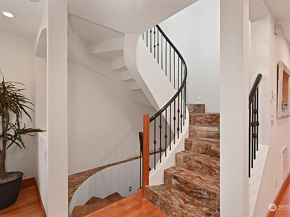 Magnolia! Sparkling Craftsman townhome boasting vaulted ceilings, abundant natural light, gorgeous spiral staircase & beautiful wood paneling. Chef's kitchen w/new granite counters, tile back splash, with Samsung & Maytag SS appliances. Primary suite w/deck & territorial views. Each bedroom w/en suite bathroom! Newly refinished hardwood flooring & fresh paint throughout. Just-installed brand new roof & skylight. Private patio off main living spaces w/perennial gardens and fenced rear yard. Rebuilt 2019 decks off kitchen & primary BR. Recent exterior paint & newer carpet. Efficient hydronic heating system. Fabulous Magnolia location, 5 minutes to Magnolia Village & Discovery Park. Busline downtown 1/2 block, 14 minutes to S.Lake Union.