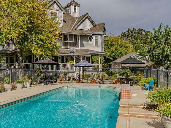 Nestled on 14.24 acres of usable agricultural land in a very desirable area, this charming 3-bedroom, 3-bath Victorian-style home offers a rare blend of space, privacy, and opportunity. With 3,062 sq ft of living space, the home showcases classic architectural character, beautiful built-in details, and a thoughtful layout, ready for your personal touch.The property has been previously used for vineyards and remains agriculturally zoned, making it ideal for farming, hobby vineyards, horses, or simply enjoying expansive open space. The setting is park-like, beautifully private, and fully fenced, featuring mature landscaping and serene surroundings. Outdoor amenities are designed for entertaining and enjoyment and include a built-in swimming pool with a dedicated outdoor pool bathrooma fantastic feature for gatherings and summer entertaining. An outdoor shower with hot water off the house adds convenience, perfect for rinsing off after a swim or washing dogs. Additional features include multiple outbuildings, a detached extra-deep garage, and one structure equipped with a car lift, ideal for car enthusiasts, workshops, or extra storage. Inside, the home offers numerous beautiful touches, including stunning built-in stained glass elements, adding character and timeless charm throughout. While the home does require TLC, the potential is undeniable. Conveniently located, this property offers peaceful country living without sacrificing central convenience, all within a highly desirable area.Property will be sold in as-is condition. Make this unique estate your own and bring new life to a truly special property.