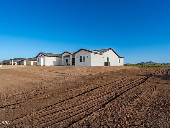 Discover this spacious 5-bedroom, 4-bathroom home, situated on 1 acre horse property with no HOA and irrigation rights. With 3,687 sqft of living space this property offers both comfort and functionality with a well designed open floor plan. House features a huge open floor plan with 10 foot ceilings and 10+ on vaulted areas. Open floor offers ample natural light and shutters in the right locations. The modern kitchen layout features a wall built in microwave/oven combo as well as a 36 inch cooktop, 42 inch upper cabinets, and massive Roma Quartz kitchen island, with a Farm sink that is serviced by a fully paid reverse osmosis water filtration system. This home features a huge Double Master shower with raindrops, split bedrooms as well as two bedrooms having their own private en-suite restrooms with showers. Other key features are Private road entry, Front modern 8 foot double Iron door, 2 inch blinds in all rooms plus garage, wired 8 camera Reolink security system around house, 5 wired security motion detection flood lights, 5.1 surround system, Milgard quality windows, 400 amp electrical panel to accommodate all your power needs, Installed Tesla EV charger, 3 car garage with side access with myq application controls, Oversize Rear patio for large events, Oversize 2,000 gallon septic tank for worry free capacity, and shared well between 3 PROPERTIES only. This home is perfect for families looking for space, privacy, and premium amenities. Don't miss out on this incredible opportunity!