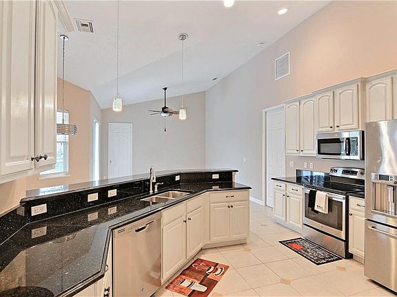 Beautiful 4 bedrooms, 3 bathroom pool home on the lake in popular gated community! New A/C! Kitchen is complete with granite tops + breakfast bar w/SS appliances. Separate living + family rooms. Generous master suite w/access to screened patio, spacious walk-in closet and master bathroom! Triple split floor plan offers privacy for family or guests. Lush landscape adorns the yard!