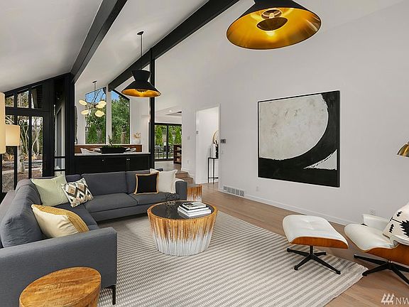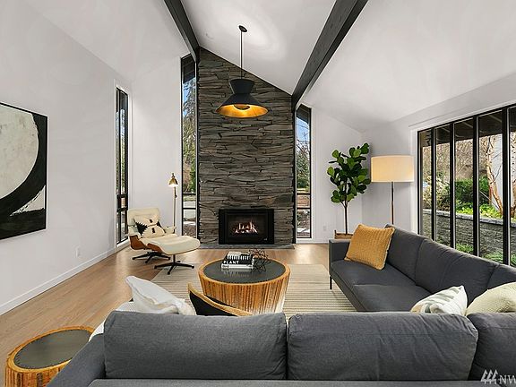 Stunningly renovated Madison Park mid-century modern with soaring, wood-paneled ceilings, white marble countertops, floor-to-ceiling windows, extensive hardwood flooring and a wall of west-facing sliding glass doors. Hand selected designer finishes and fixtures throughout. All new kitchen with black walnut cabinetry & Miele appliances that opens to the light filled dining room, family room, oversized back deck and all new back yard. Expansive living room with floor-to-ceiling stacked stone fireplace surround. 4 bedrooms up, all with vaulted ceilings. All-new gorgeous bathrooms. Lower-level rec room. A/C. 2-Car garage with new glass paneled garage doors. Close-in Canterbury location just blocks from the shops & restaurants of Madison Park.