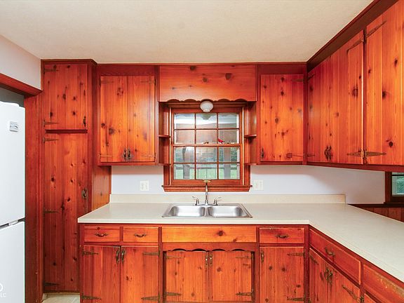 Discover the inviting home awaiting you at 2215 Albany ST, BEECHGROVE, IN. This single-family residence is ready to move in and start creating memories. The Family Room serves as a warm and inviting space, anchored by a fireplace that promises cozy evenings and features a wood wall and built in bookshelves, adding character and charm. This home boasts a large living room as well for a quiet space of your own or an additional media room. The kitchen offers a functional layout with a kitchen peninsula, perfect for meal preparation or casual dining. The wood features in the kitchen and dining room, paired with multiple views of the backyard add rustic elegance and warmth, making these spaces both practical and aesthetically pleasing. Step into the sunroom, a tranquil retreat filled with natural light and a beautiful view of the backyard, ready for entertainment or your peaceful morning coffee. The home includes 3 bedrooms and 2 full bathrooms, one of which includes a convenient walk-in shower and additional door out to the sunporch. All 3 bedrooms have new vinyl wood flooring you will love for style and ease. Next make your way down to the basement which boasts tons of room to make this space your own, with plenty of light and enough space for hobbies, entertainment and storage. This single-story home, built in 1962, sits on a generous lot of almost 1 acre, offering ample space for all to enjoy. This warm, spacious home is a rare find and won't last long!
