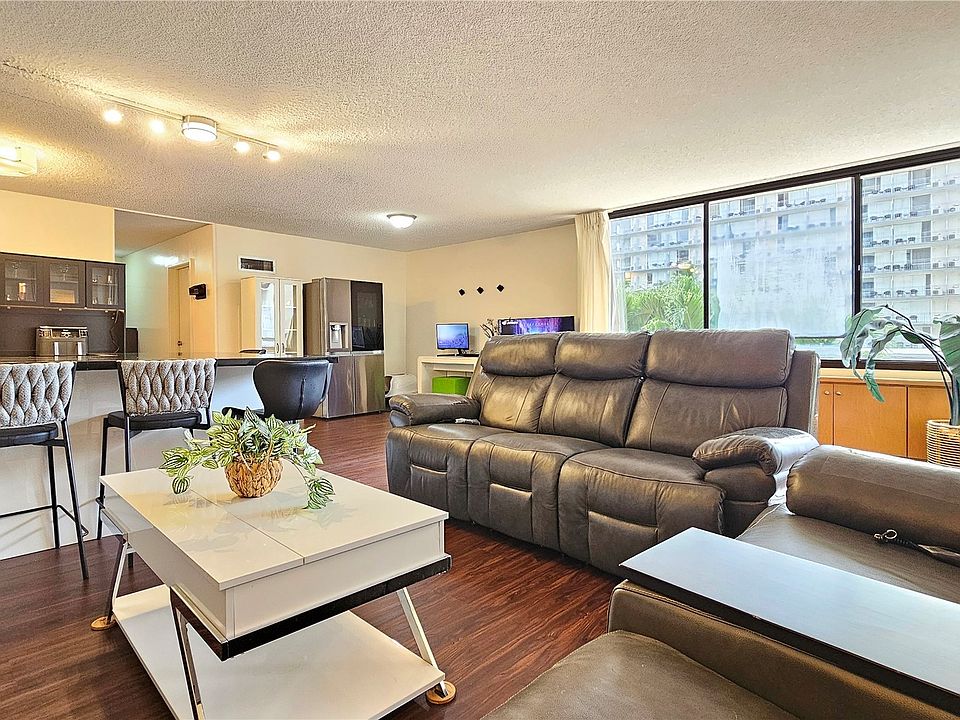 A spacious corner-unit 2-bedroom residence in the heart of Waikiki. This home is partially remodeled in 2025 with new flooring throughout the entire unit and an open-concept kitchen, creating a bright and comfortable living space. The unit includes an in-unit washer and dryer and central AC. The maintenance fee covers central AC, electricity, cable, Wi-Fi, sewer, water, hot water and common area maintenance. Aloha Towers consist of two towers, and owners can enjoy the amenities in both, including a heated pool, whirlpool, sauna, barbecue areas, and recreation spaces, plus the convenience of guest parking in each building. The building is 100% insured, and on -site security provides added peace of mind. The location is convenient, just moments from shopping, dining, and the beach.