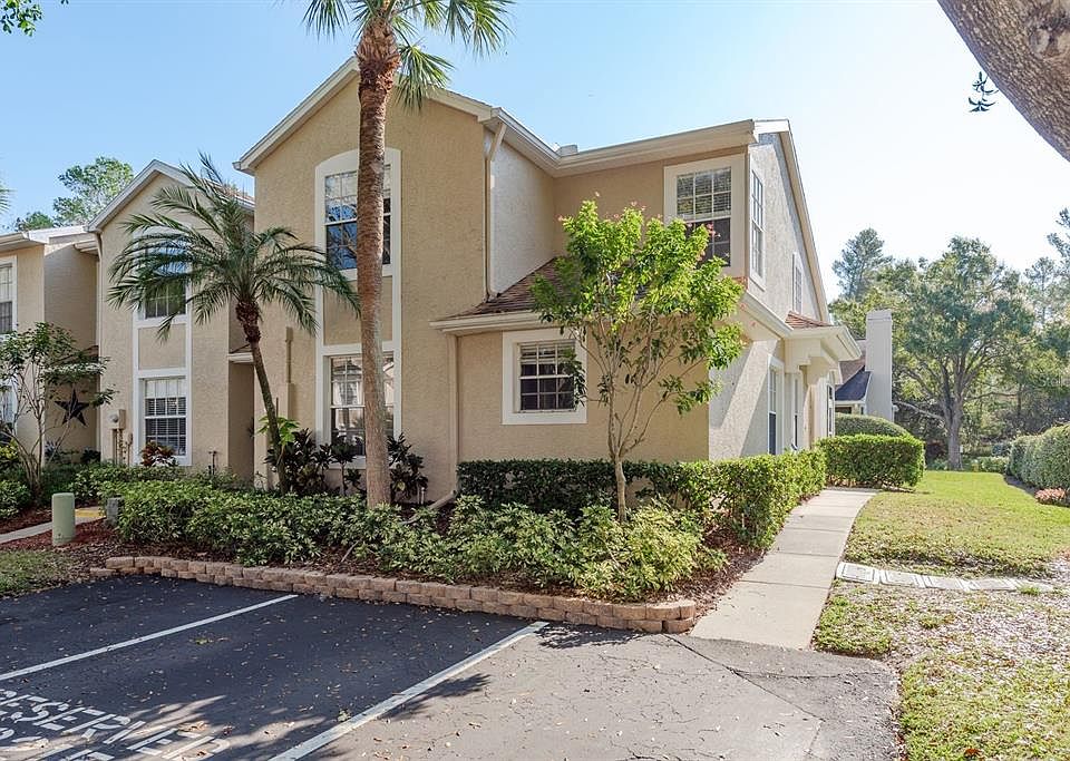 One or more photo(s) has been virtually staged. Seize a rare opportunity to secure an ASSUMABLE 2.75% interest rate on this unique, true 3-bedroom, 2.5-bath townhome—the ONLY 3-bedroom END UNIT available in this intimate, highly desirable community of just 39 primarily owner-occupied residences. Step inside to an open floor plan where natural light floods through, highlighting the dramatic vaulted ceilings in both the living room and the conveniently located first-floor primary bedroom. The updated kitchen is a chef's delight, boasting sleek stainless steel appliances, a large peninsula with a breakfast bar, and specialized, high-efficiency cabinetry featuring a lazy susan, hidden rolling trash receptacle, elliptical pull-out shelving, and double drawers. Enjoy morning coffee in the dedicated dinette area or retreat to the all-weather sunroom with enclosed windows, offering year-round enjoyment. The living, dining and kitchen areas feature premium NuCore luxury plank vinyl flooring. The spacious primary bedroom features dual closets and an ensuite with a soaking tub and separate shower. Upstairs (the stairs have been recently refinished in oak), find two generously sized bedrooms with newly installed premium water and scratch-resistant Pergo flooring, a walk-in closet, a linen closet, and a full bath. This pet-friendly neighborhood with a community pool is perfectly situated with easy access to US 19 and Belcher Road, making commuting a breeze and putting the vibrant scenes of Tarpon Springs, Dunedin, and stunning local beaches just minutes away. Don't miss your chance to make this exceptional home yours!