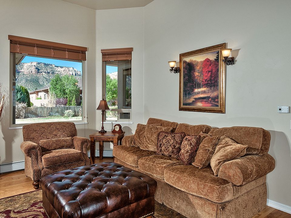 This executive Redlands home exudes casual Western elegance set against the dazzling backdrop of the Colorado National Monument! The covered back patio catches the Monuments best side, and nearly every window frames vistas of the exquisite rock formations! Step inside and find manmade beauty in a home clad in hardwood flooring and bedecked in granite! Tile backsplashes with intricate mosaics adorn the kitchen and bathrooms, and the sumptuous finishes make the homes interior a relaxing oasis that rivals its stunning views! A 2-sided gas-log fireplace does double duty creating cozy ambiance, and 18-foot ceilings give the home a stately feel! Dual walk-in closets in the master suite vie for attention with a roomy indoor laundry room complete with laundry sink, storage cabinets and a closet and the sizable pantry is fit for a king! Come tour the home you know you want, today!