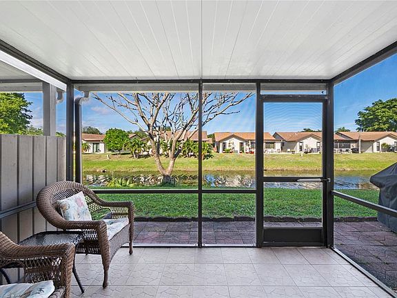 Ready to move in townhouse in the heart of Deerfield Beach! TWO primary suites, with BONUS room/LOFT/DEN! Tile floors downsairs & wood-like vinyl floors upstairs. Beautiful kitchen with granite counters & stainless steel appliances. One car garage. This home is spotless & well-kept! Enjoy the beautiful views of the lake from the comfort of your screened in patio. This home has accoridon shutters on every window! Washer & dryer inside the unit for added convenience. OK to RENT IMMEDIATELY, NO association approval needed! This gated community has a low HOA! LOW HOA includes exterior, new roof, heated pool, hot tub, play area, gym, & indoor racquetball! Pets under 40lbs welcome. ONLY 5 miles to the BEACH, near restaurants and shopping. Furniture available if buyer desires. Easy to show!