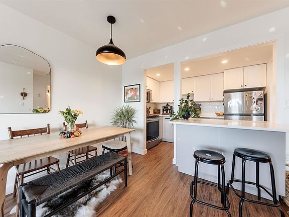 Beautifully updated top-floor 1 bed, 1 bath home with stunning views of the city, Lions Gate Bridge, Burrard Inlet & mountains. Enjoy sunsets from your west-facing balcony or entertain around the large kitchen island featuring stone-look counters, new appliances & sleek hex tile backsplash. Spacious layout fits a king bed, plus a stylish bath with walk-in shower & gold accents. Steps to brew pubs, markets, coffee shops & parks. Includes 1 parking & 1 storage.