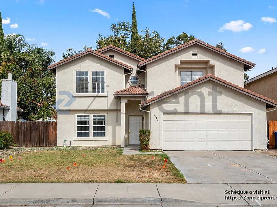 Welcome to this beautifully updated two-story home located at 2215 Jenni Ln, Tracy, CA 95377. This property boasts a spacious layout with four bedrooms and two and a half bathrooms, perfect for those seeking comfort and functionality. As you step inside, you're greeted by an inviting open floor plan with fresh paint and sleek laminate flooring throughout, creating a modern and airy ambiance. The living area features large windows that allow for plenty of natural light, and a cozy fireplace adds warmth and charm to the space.
