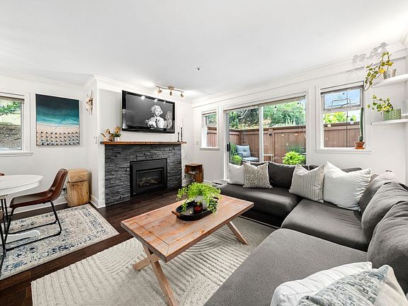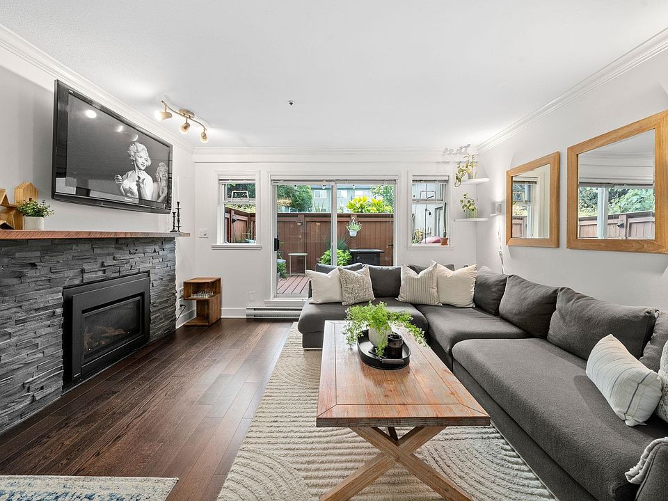 A rare, oversized 1-bedroom corner unit combining space, style, and privacy! A split-level entry with soaring ceilings leads to a bright layout. Excellent separation between the generous sized bedroom and updated kitchen and living space, plus a full bath with soaker tub, in-suite laundry, and a cozy gas fireplace. This corner layout runs front to back with two fully fenced private patios—one bathed in sun, the other a cool retreat. Rainscreened in 2007 with a healthy contingency fund and low strata fees, this well-kept boutique building offers peace of mind in a vibrant, walkable neighborhood. Just minutes to downtown, the North Shore, or local favorites on Powell Street, this is a vibrant neighborhood with a welcoming community you’ll love coming home to.