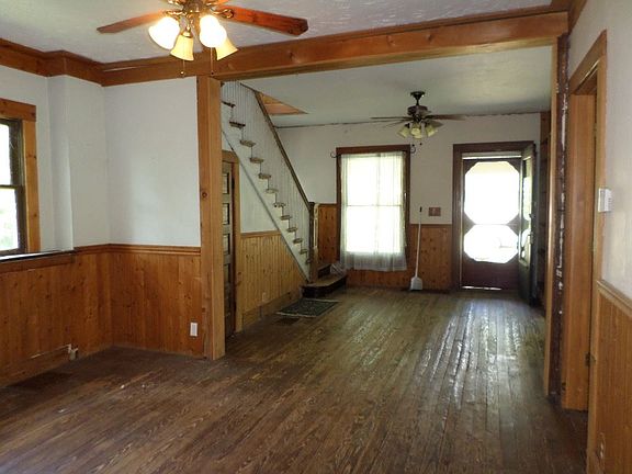 Large 2 story style home in a nice location. This home has high ceilings, some hardwood flooring and original woodwork. 4 beds, 1 bath. Main level features living/dining area, den, 1 bedroom, kitchen, and laundry. Upper level has 3 additional bedrooms and 1 full bath. Unfinished basement, 1 car det garage, covered front porch. Newer siding and roof. Needs some TLC. Being sold as-is.