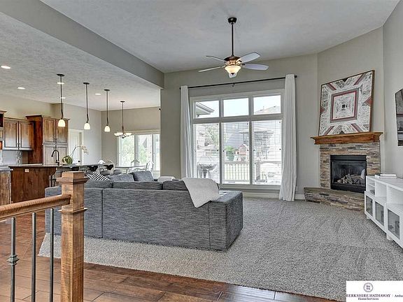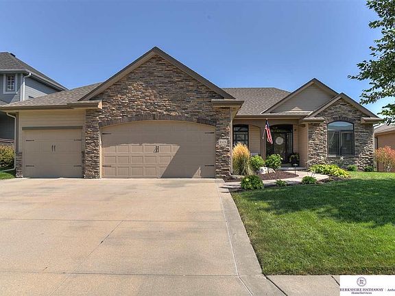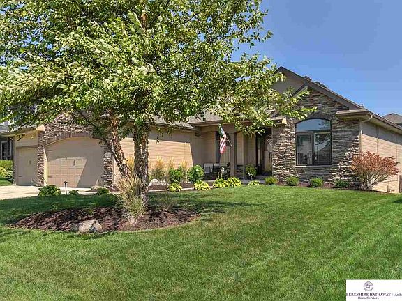 Gorgeous and Updated custom walkout ranch home with three bedrooms and two full baths. The main floor has abundant natural light, fresh neutral paint, soaring ceilings in the large living room and stone surround gas fireplace. An amazing kitchen features stainless steel appliances, including advantium oven/microwave, large center island, walk-in pantry and views off the deck. The master suite welcomes you with a gorgeous plank wall, updated bath with dual sinks and walk in shower. The lower level is partially complete with a workout room and is ready for your finish! Elkhorn North schools and excellent location near Dodge and near the expansion of 180th Street!