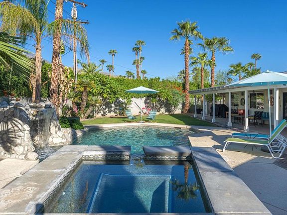 You found it!! There is No land lease; No HOA. There is NEW HVAC & NEW ductwork, NEW commercial grade misting system, NEW pool equipment, NEW water softener, and 30 owned solar panels with NEW electrical panel and a 5 year old tile roof. Relax and rejuvenate in your private salt water Pebble Tec pool, heated spa or in the lush backyard mixed with desert and tropical plants. The pool features a large waterfall that creates a private grotto. The backyard pergola offers shade for outdoor dining and magnificent breathtaking views of the San Jacinto Mountains. Interior features include a living room and dining area with vaulted ceilings, a large REMODELED kitchen with gas range and stainless steel appliances compliment the NEW porcelain tile flooring throughout the home. The two car attached garage offers built in cabinets for additional storage and washer and dryer hookups. For the car enthusiast, the attached aluminum carport with motorized gate offers protection for your additional vehicles. Located in Central Palm Springs, this quiet 3 BD/2 BA remodeled home offers outdoor living at its finest, in a quiet and discreet Sunrise Park neighborhood that's close to everything Palm Springs has to offer (midway between downtown, the airport and shopping). Come check it out yourself!