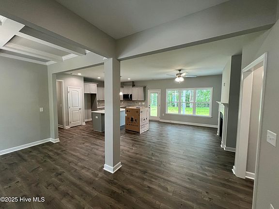 The Madelyn Plan is a Beautiful RANCH Design with Hip Roof which Creates Great Curb Appeal- This is one of our newest plans and it has so much to offer with Grand Entry Foyer- Hard to find Formal Dining Room with Coffered Ceilings and Lots of Trim Work, OPEN FLOOR PLAN with Large ISLAND KITCHEN QUARTZ Counter Tops, Designer Tile Back Splash, Stainless Appliances- Kitchen is Overlooking Large Family Room with Fireplace and Beautiful Mantle . SPLIT Bedroom Design with KING-SIZED LUSH Owners Suite with SPA Bath with Soaking Tub + Sep Shower with SEAT!! Spacious 2nd and 3rd Bedrooms. Covered Front and Back Porches and Large Back Yard!