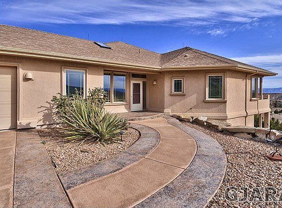 One of a kind home, designed to take in the natural surroundings with views that are some of the best in the Valley. The location is quiet and secluded, but just minutes from Downtown. Triple pane windows frame the beauty of the natural landscape. Each room in the house has the upgrades you would expect. The design and layout makes coming home a pleasure. The beautiful master suite is private, with Monument views and a luxurious master bath with fantastic walk-in closet; a light/bright utility room with an office nook and central vacuum system. Downstairs you will see all the storage available in the cellar, crawl space storage and extra closets. Enjoy a kitchenette in the family room right off the patio for easy entertaining. There is additional safekeeping with a security system and lightening arrestor protection system. There is RV parking with sewer & water hook-ups.