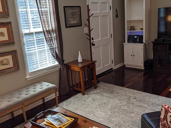 Furnished private townhome at 2215 Toll Gate Road (at the bottom of Monte Sano, a short walk to LandTrust trails and just east of Five Points). Clean, and available immediately. Two Stories. Upstairs: 2 bedrooms with large open closets and full bathroom. Downstairs: Living Room, extra large eat-in kitchen, 1/2 bath, large storage closet and laundry room with washer/dryer. Private fenced patio and deck and one dedicated parking space in rear. Rent is $1550 per month, one months rent ($1550) for security deposit. There are no additional rental fees for mail or parking. Mailbox is provided. Tenant pays utilities by setting up an account with Huntsville Utilities. Furnished- No smoking and no pets on premises.